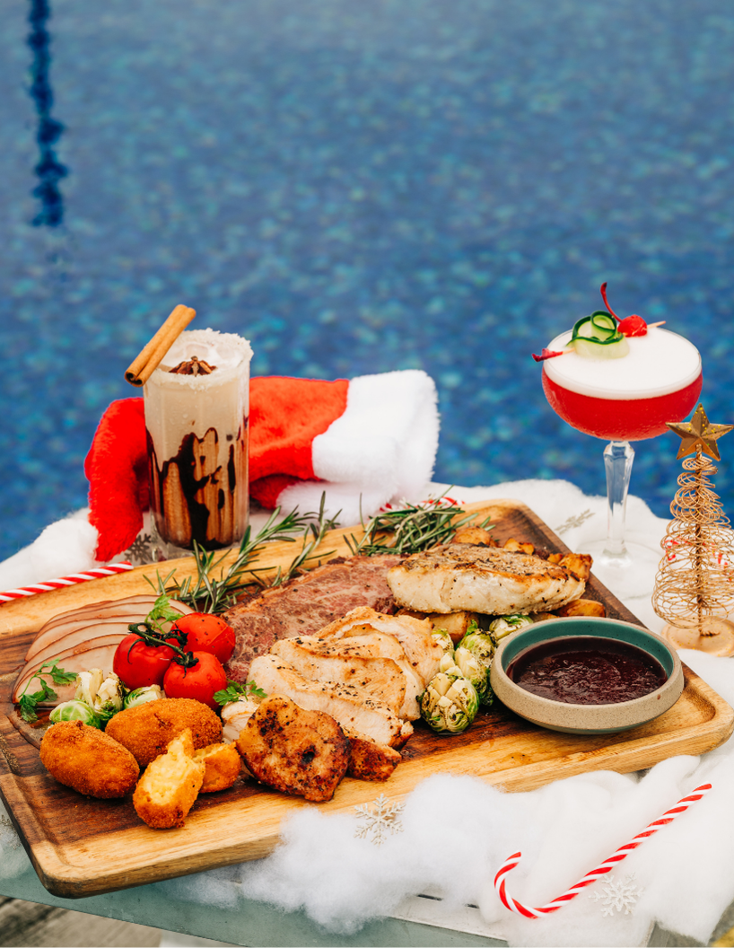 Celebrate the season at 1-Altitude Coast with a festive dining experience by the sea. Indulge in the Festive Platter ($78++), a sumptuous spread of sirloin, roasted turkey breast, seared barramundi, honey baked ham, and all the holiday trimmings — perfect for sharing with loved ones. Complete the celebration with our Christmas cocktails, including Mistletoe Kiss ($22++), a floral gin creation, and Altitude’s Eggnog ($21++), a creamy cognac classic dusted with nutmeg.