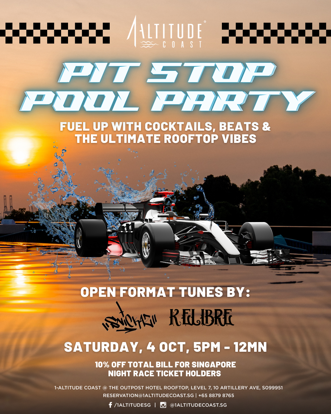 Shift gears and cool off at the ultimate race weekend poolside celebration on Saturday, 4 October, at Sentosa’s highest rooftop beachfront destination!