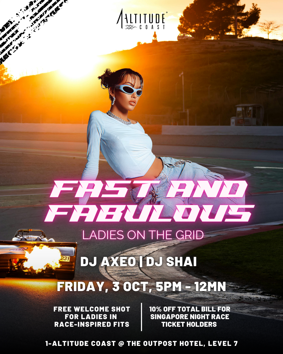 Flash your tickets from the Singapore Night Race and get 10% off total bill!